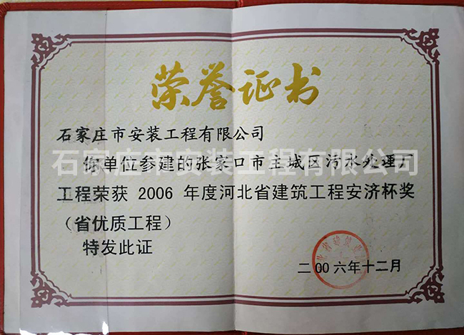 2006年度河北省建筑工程安濟杯獎(省優(yōu)質工程)